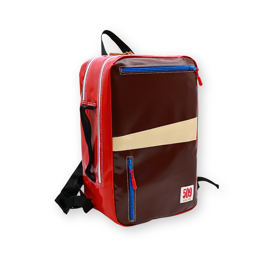Lo zaino da viaggio modello RELEAF realizzato con telo in pvc è un prodotto unico, adatto a chi si sposta per lavoro o per studio ed è sempre in movimento.