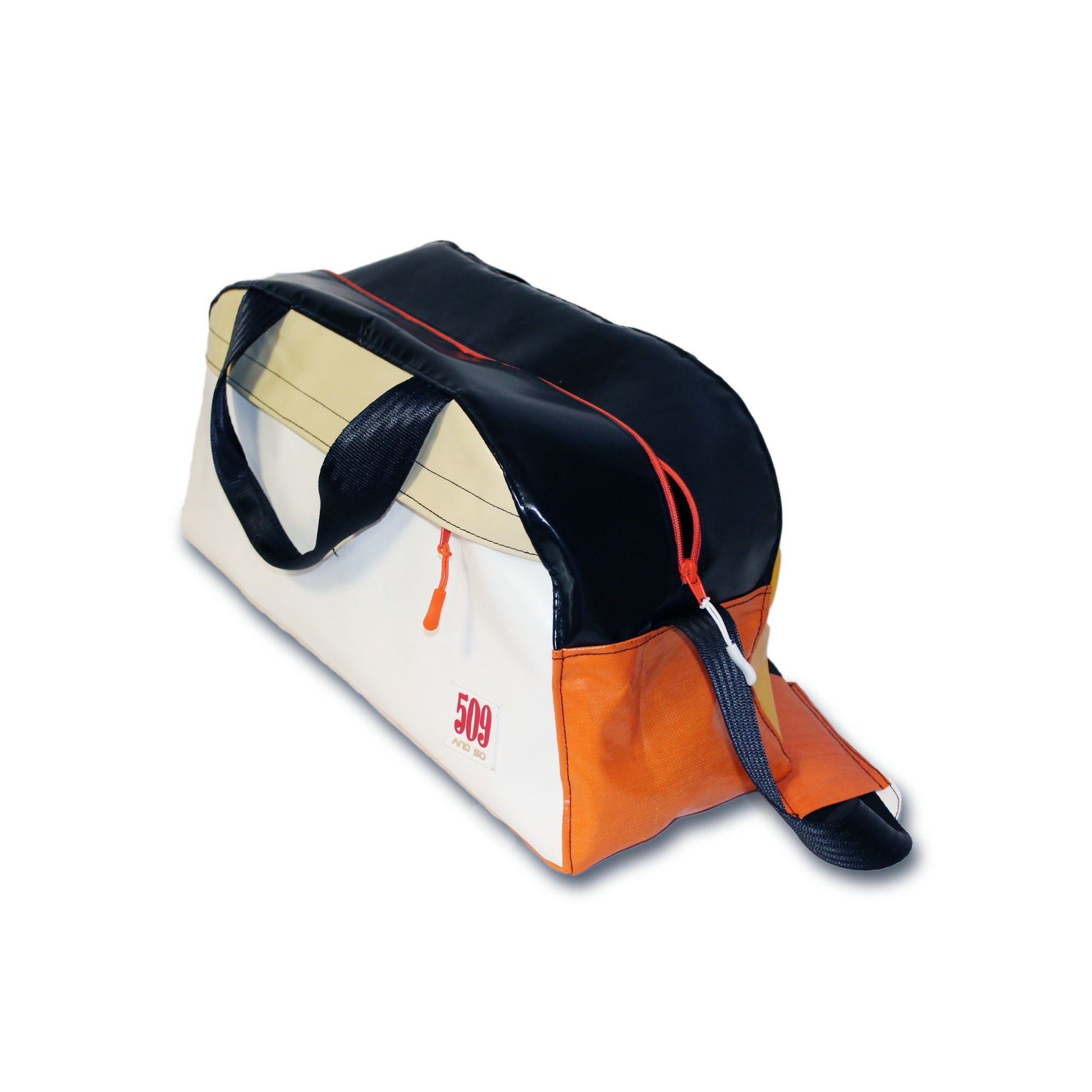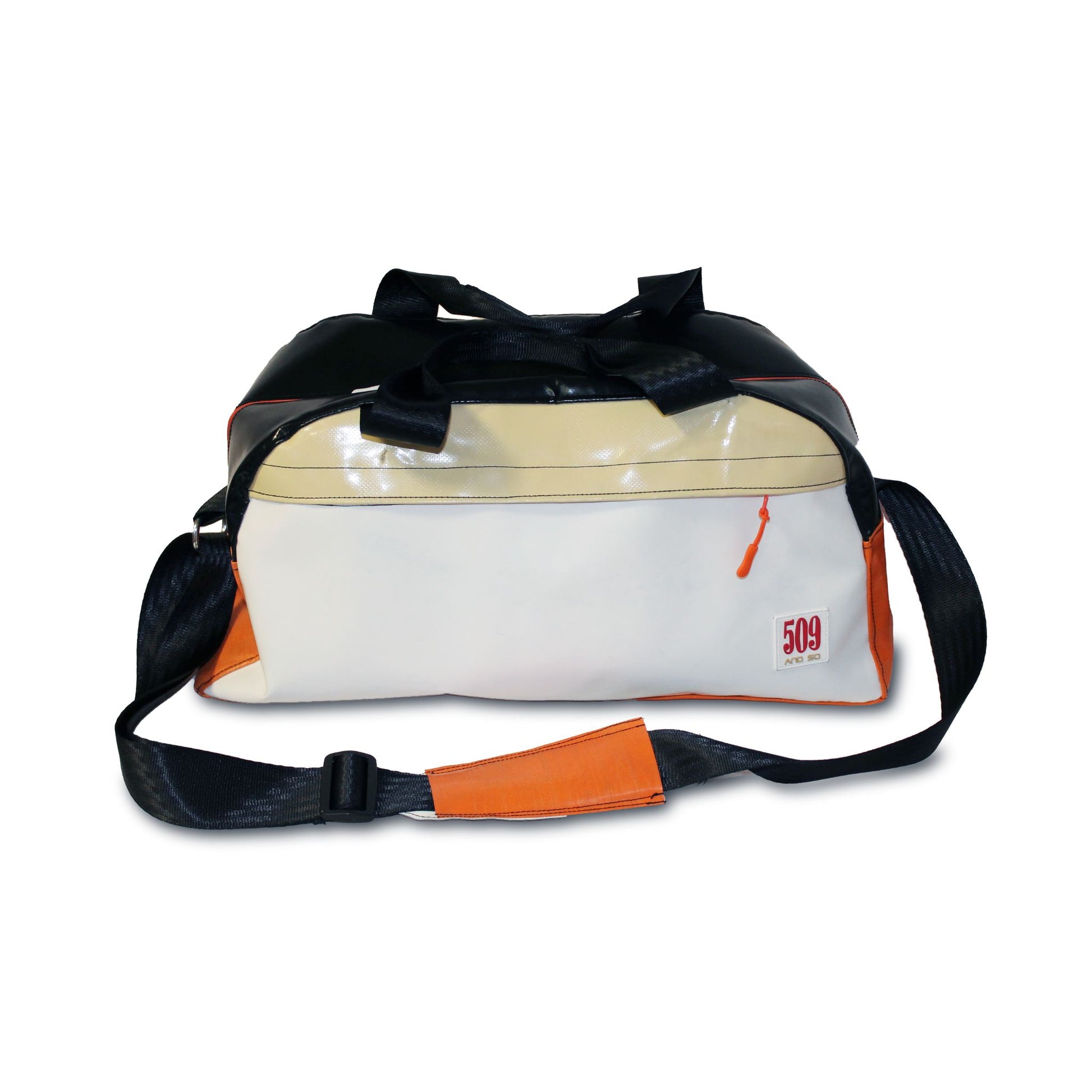 Prodotto e pezzo unico nelle sue colorazioni e caratteristiche, BREEZY ha un'ampia tasca esterna e una tracolla realizzata con cinta di sicurezza, foderata internamente con tessuto e facilmente igienizzabile.