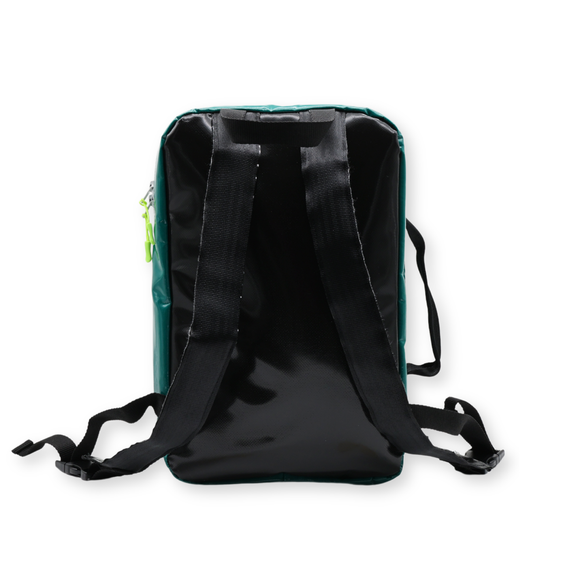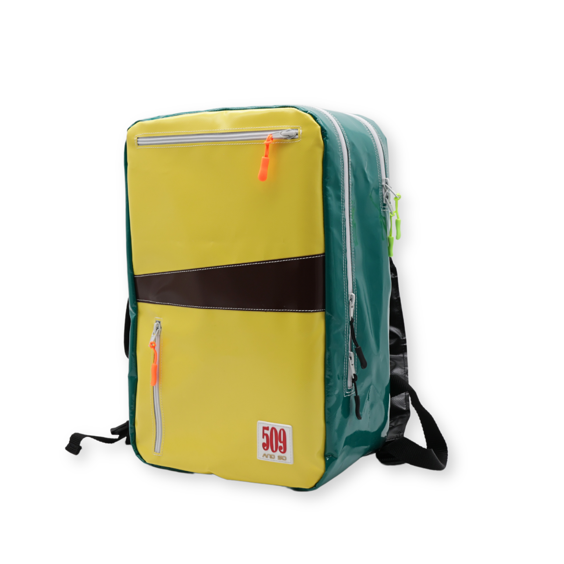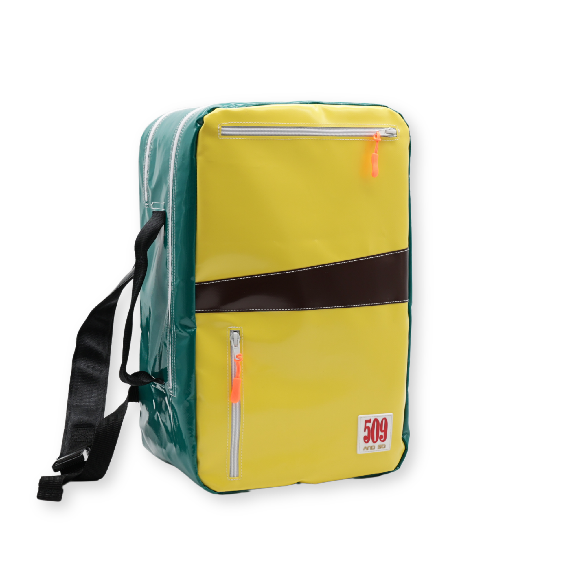 Lo zaino da viaggio modello RELEAF realizzato con telo in pvc è un prodotto unico, adatto a chi si sposta per lavoro o per studio ed è sempre in movimento.