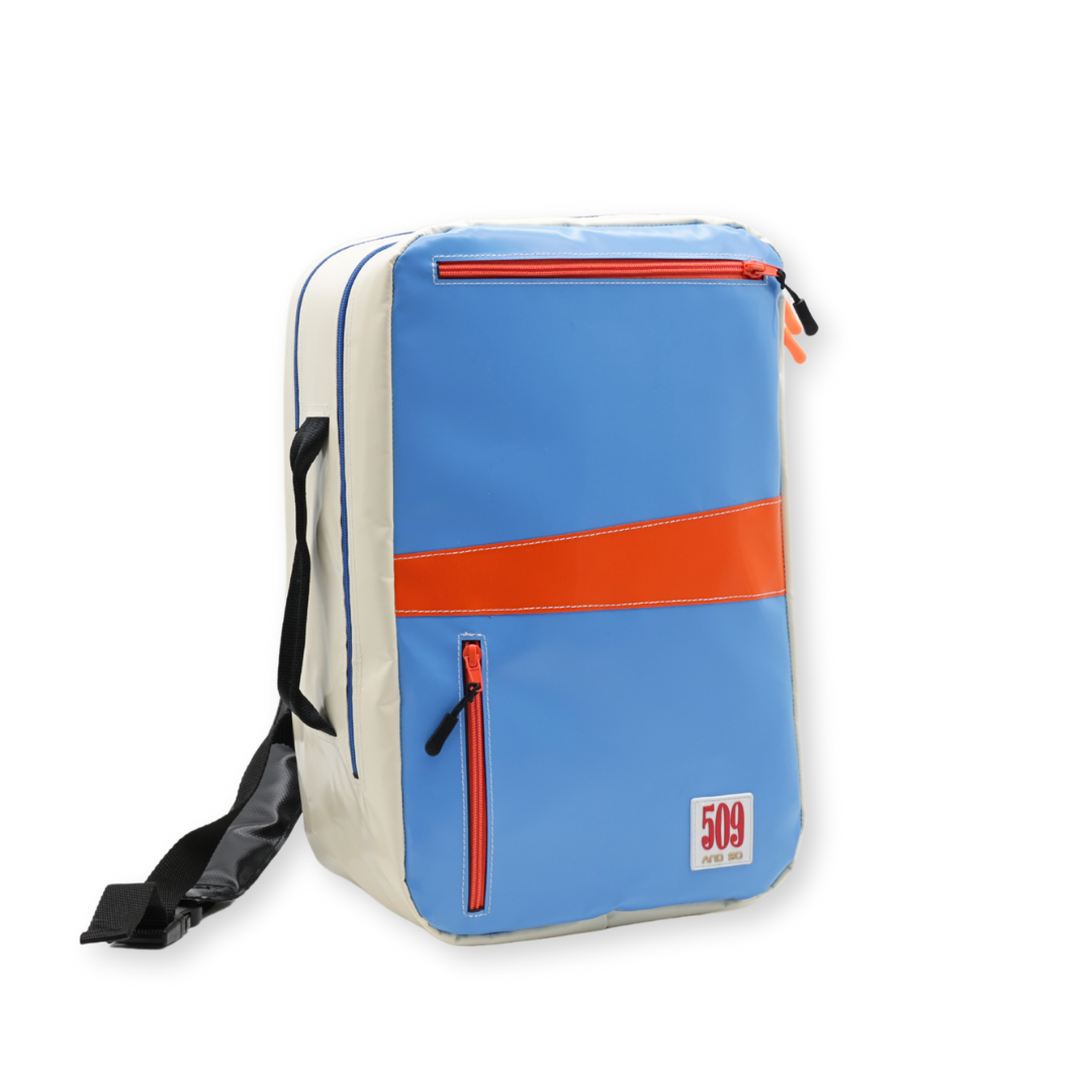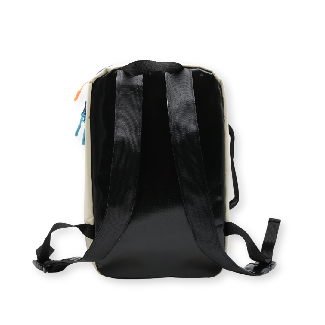Lo zaino da viaggio modello RELEAF realizzato con telo in pvc è un prodotto unico, adatto a chi si sposta per lavoro o per studio ed è sempre in movimento.