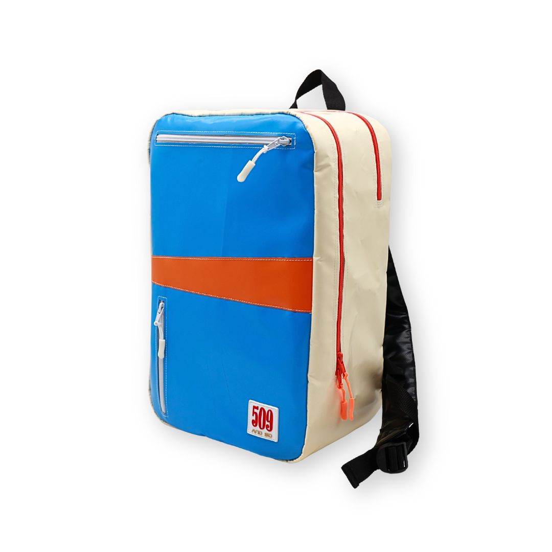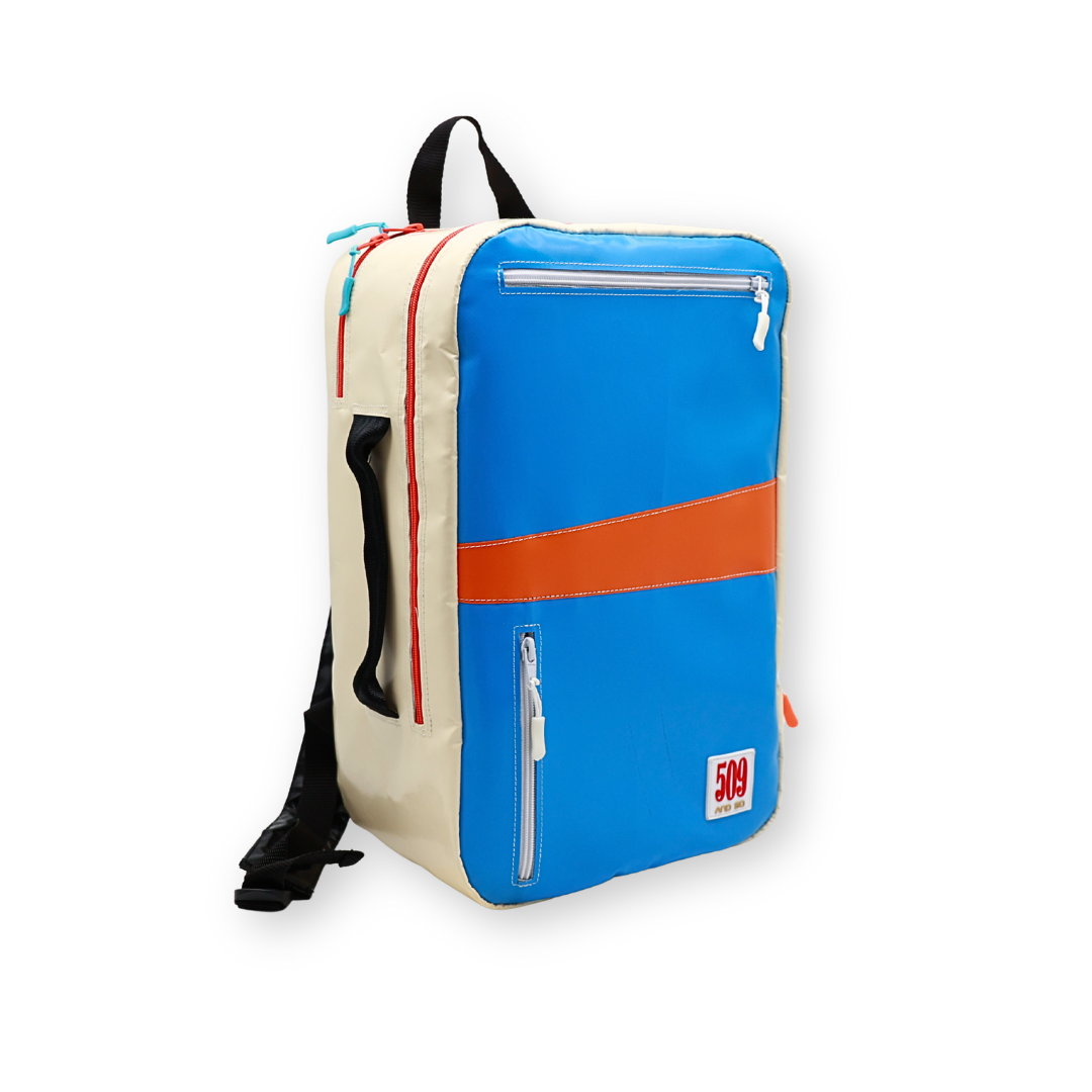 Lo zaino da viaggio modello RELEAF realizzato con telo in pvc eΜ un prodotto unico, adatto a chi si sposta per lavoro o per studio ed Γ¨ sempre in movimento.