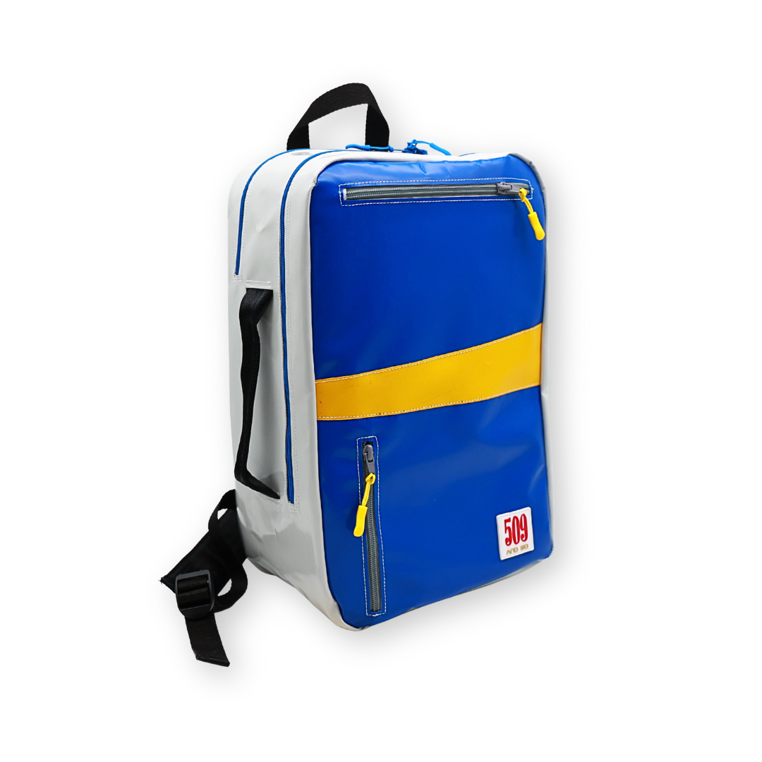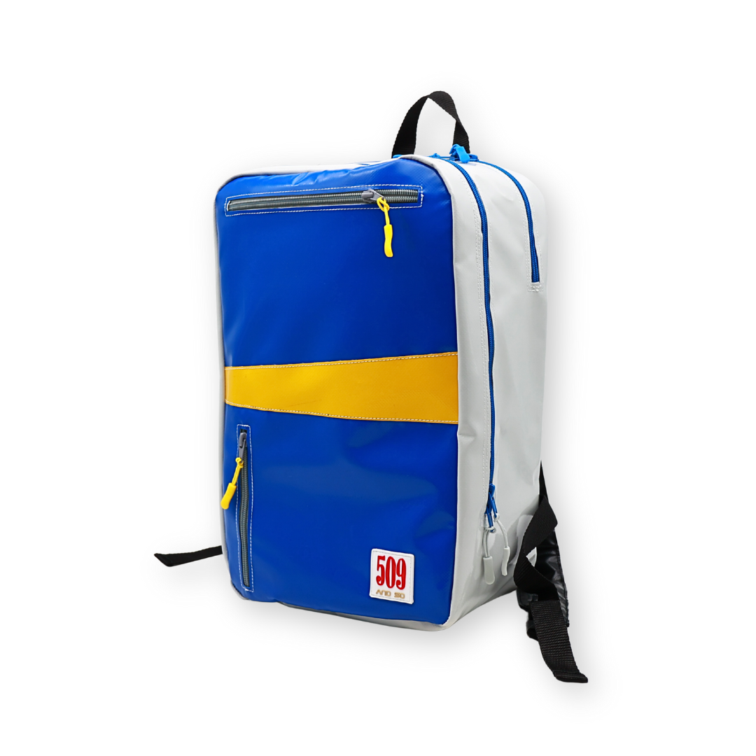 Lo zaino da viaggio modello RELEAF realizzato con telo in pvc eΜ un prodotto unico, adatto a chi si sposta per lavoro o per studio ed Γ¨ sempre in movimento.