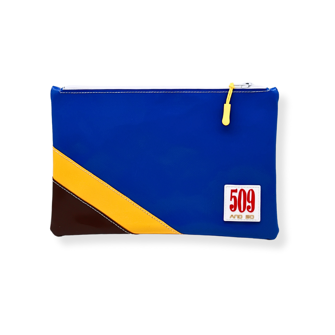 Perfetta da sola come mini clutch o da inserire in una borsa più grande, è resistente, impermeabile e facile da pulire. Ogni pezzo è unico grazie all’uso di materiali riciclati, con leggere variazioni di colore o texture che rendono ogni pochette diversa dalle altre.