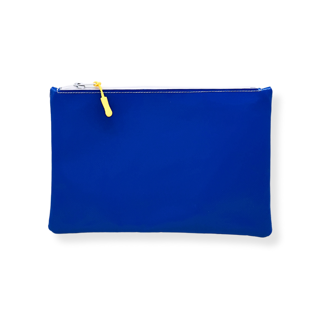Realizzata interamente in PVC riciclato, questa pochette unisce sostenibilità e stile in un design essenziale ma di carattere. Con le sue dimensioni, è più capiente del nostro modello Small, offrendo spazio extra per custodire smartphone, chiavi, portafoglio, make-up o piccoli oggetti personali.