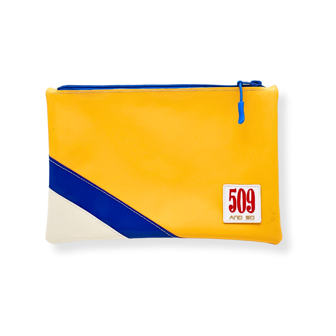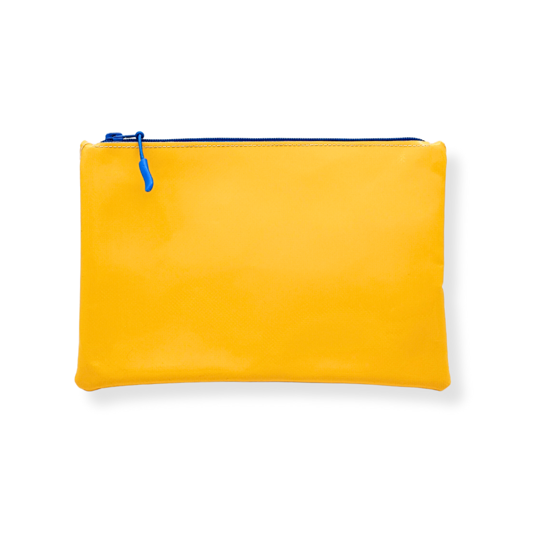 Perfetta da sola come mini clutch o da inserire in una borsa più grande, è resistente, impermeabile e facile da pulire. Ogni pezzo è unico grazie all’uso di materiali riciclati, con leggere variazioni di colore o texture che rendono ogni pochette diversa dalle altre.