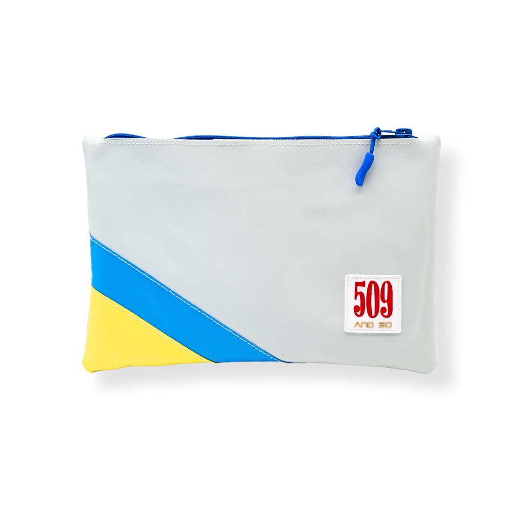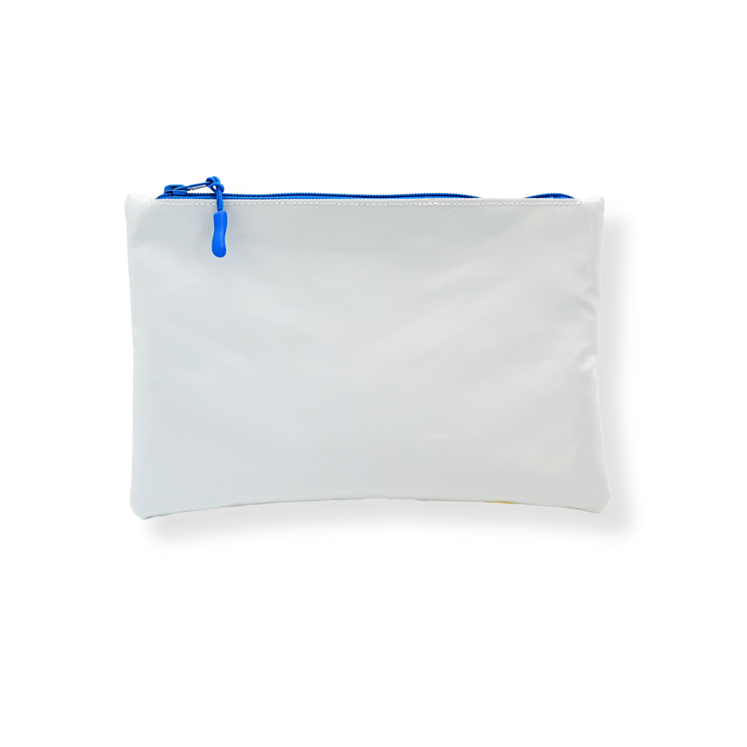 Perfetta da sola come mini clutch o da inserire in una borsa più grande, è resistente, impermeabile e facile da pulire. Ogni pezzo è unico grazie all’uso di materiali riciclati, con leggere variazioni di colore o texture che rendono ogni pochette diversa dalle altre.